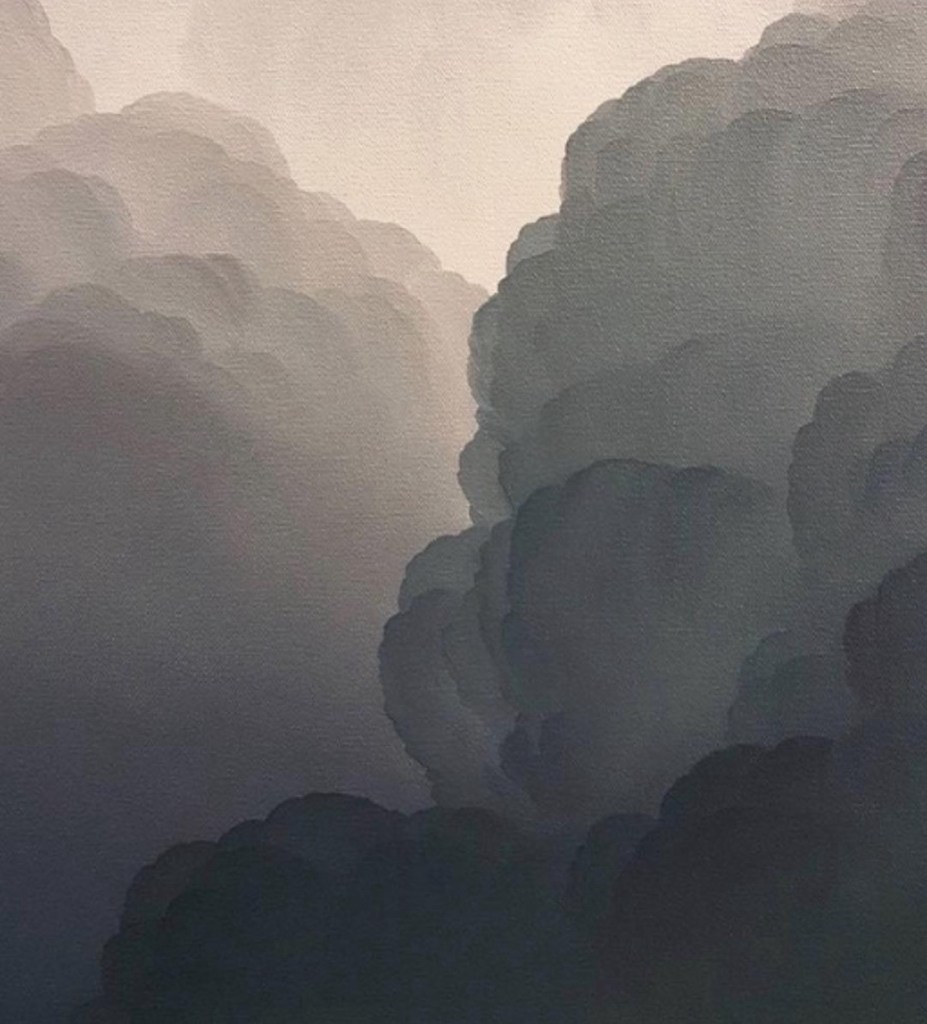“Cloud” Color. Inspired by a consciousness-altering encounter with man-made nature, dark grey steel art on the roof of the Met, gnarled as if a tree had been hit by lightning, a Gotham skyline, hovering storm clouds, overlooking miles of living trees, complete immersion in a twisted, peaceful urban refuge, enchanting, majestic, synthetic, cataclysmic, a non-violent warning, both plan-disrupting and cozy-making. I rarely leave a place feeling as I do right now: grateful, speechless, mildly buzzed, exhilarated as Emerson; glad to the brink of fear.